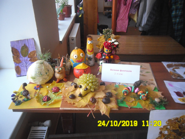 24 жовтня 2019 року в приміщеннях початкової і старшої шкіл відбулася виставка на тему: “Природа. Фантазія. Творчість. Свято урожаю”